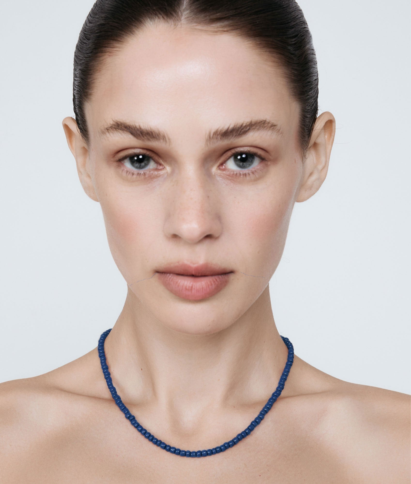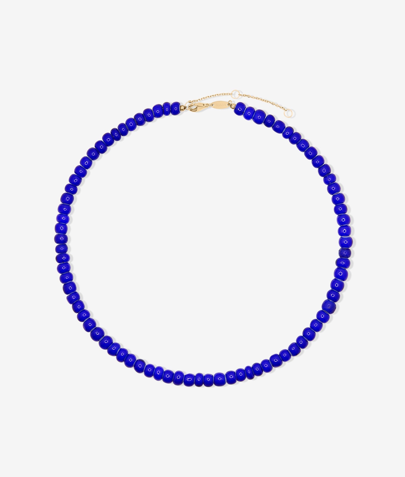 Azul-halskæden er levende og minimalistisk og har markante koboltblå glasperler, der skaber en slående monokrom effekt. Dette hverdagsstykke er perfekt til at kombinere med andre smykker eller bære alene og giver et selvsikkert farvestænk med raffineret balance.